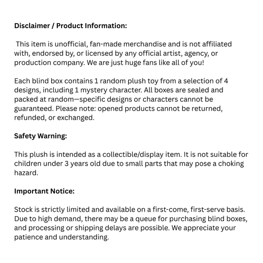 25 Cm Plush Blind Box (LIMITED STOCKS)